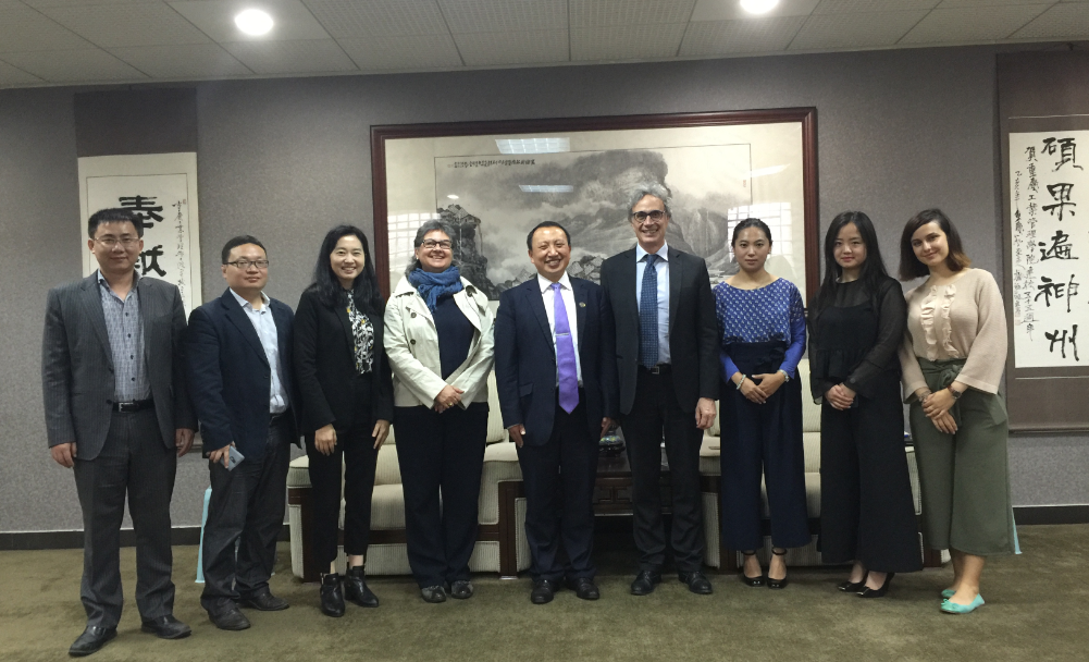 随后黄伟九副校长在318会议室接见了意大利客人,并向客人介绍了我校的历史沿革、校区规划、专业设置、优势学科、产学研合作和国际合作交流情况。黄副校长重点介绍了我校国际化工作的三个标志性工程:中韩KAIST合作办学项目、教育部中德(重庆)汽车职业资格认证与培训中心和两江国际学院韩方联席院长李昌熹成为重庆市入选2017年度国家外专千人计划的唯一人选。科技参赞龚卓龙向黄副校长介绍了意大利的基本情况,并提到意大利在汽车设计、零部件组装等领域在全球的领先地位,重庆的汽车年产量已经超过300万量,意大利十分重视重庆的汽车产业市场,尤其提到两江新区的中意合资企业,中意汽车产业的合作前景将十分广阔。龚卓龙还表示意大利的汽车设计与我校工业设计等专业契合度高,希望将来与我校建立产学研合作。意大利驻重庆总领事馆教育处处长德朱莉女士希望引荐米兰理工大学等与我校学科结构匹配吻合的意大利理工院校与我校开展进一步合作。
